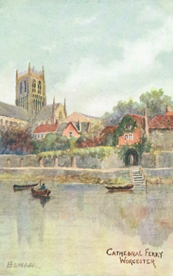 April 26th, 2015It is recorded that in the 1300s there was a ferry service already established in Worcester to take ‘monks, milkmaids and herdsmen’ from the riverside by the Cathedral to their daily work on the monastic meadows on the other side of the river. As you might imagine, in 2015 there is not much call for this service from its original users, but the ferry service still exists. If you happen to be in Worcester on a summer Saturday or Sunday after 12.30pm, for the price of 40p you can follow the course of the monks, milkmaids and herdsmen and be rowed across the river by an enthusiastic volunteer oarsman in a boat named ‘Doris’.